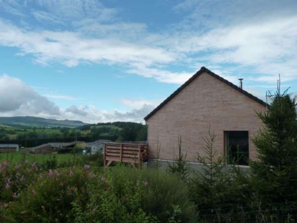 La construction est implantée à 900 mètres d’altitude sur un terraun pentu, faisant face à une vue Sud Ouest exceptionnelle sur les massifs auvergnats.