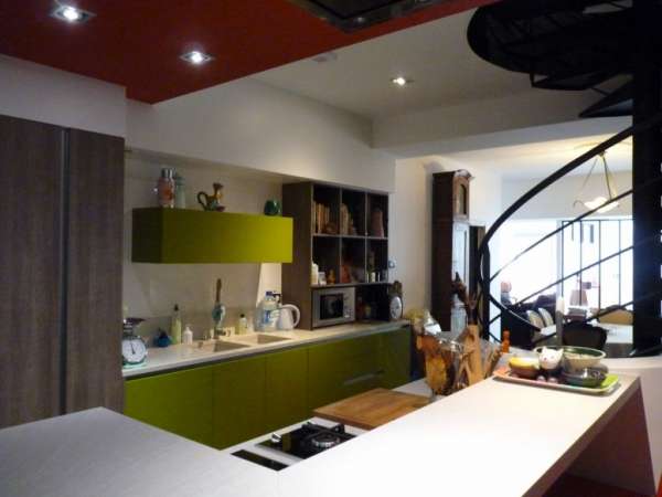 Recherche d'un agencement aéré et astucieux afin que l'habitation ne manque pas de lumière naturelle. L'architecture propose un style sur rue sobre et un aménagement intérieur d'esprit épuré et contemporain. L'insertion d'une imposante verrière au cœur de l'habitation et une optimisation des grands vitrages assure un ensoleillement homogène. Le pari audacieux d'un accès sur rue se faisant par la cuisine-bar à été pris afin de répondre à une accumulation de contraintes stimulante.